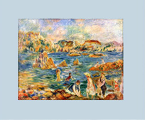 Consider mat colors that suit that subject of the image as well as the color palate - the two are often interchangeable. For instance, warm, autumnal colors such as reds, oranges, yellows, and browns often suit a painting of a field of trees with the leaves just turning. A babbling brook with flowers along the edge, on the other hand, may best match the cool colors of springtime: blues, light greens, and violets.