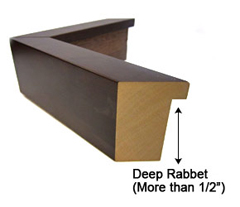 Shadow boxes are frames with very deep rabbets. They generally have glass at the front of the frame, with as much as a few inches of space between the glass and the backing. They are often used to display three dimensional (3D) art objects or dioramas.