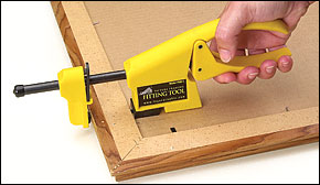 A "point driver" looks like a vise, and serves the same purpose as a point gun. The point or tab that must be inserted into the frame is placed into one end of the tool, while the other end presses against the outside of the frame. When the two ends are forced together, the point is pushed into the frame.