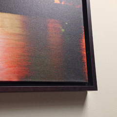 Your stretched canvas fits neatly into your floating canvas frame, attaching to the inside lip. This allows your canvas to "float", with a few millimeters of space between the outer edge of the canvas print and the inner edge of the floater picture frame. Our frame selections range from simple, to rustic, to modern, and accomodate all sizes of canvas prints.