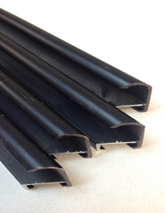 The long metal mouldings are much lighter than wood, and therefore easier to maneuver. They must be cut using a miter saw, as a straight-edge blade will not cut through the metal. Flying shards of metal can be quite dangerous, so the framer must wear a mask when cutting, and ensure a guard is in place over the saw blade.