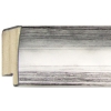 This glossy silver frame has a subtle scoop face with black distressed scratching on the outer edges. The drop edge is the same silver-foil as the face.