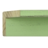 This deep L-shaped canvas floater, features distressed wood, lightly coated in mint paint, revealing light peeks of black, perfect for a rustic style.